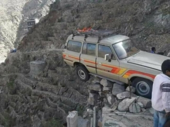 قدرة إلهية تنقذ مواطنين من السقوط بسيارة من اعلى قمة في جبل يافع «شاهد...