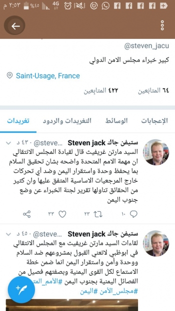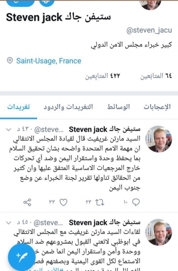 عاجل.. «ستيفن» يكشف حقيقة ما دار بين «غريفيث» و«الإنتقالي».. ونشطاء يتحدثون عن تركيز «المبعوث الأممي» على دور مليشيا الزبيدي في جرائم الإغتيالات والبسط والفوضى بعدن (تفاصيل...