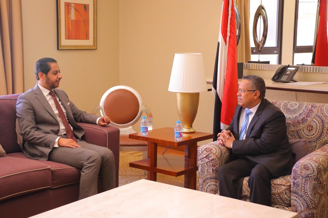 وفي اللقاء نقل السفير الجيبوتي، لرئيس الوزراء تحيات القيادة الجيبوتية ممثلة بفخامة الرئيس اسماعيل عمر جيله، إلى أخيه فخامة رئيس الجمهورية، الرئيس عبدربه منصور هادي، واستعراض مع رئيس الوزراء، الدور المحوري الذي تلعبه جيبوتي في دعم الشعب اليمني، منذ بدء الحرب التي اشعلتها مليشيا الحوثي عقب انقلابها على السلطة الشرعية، بما في ذلك استقبال الإغاثة الإنسانية واستضافة الية الأمم المتحدة لمراقبة وتفتيش السفن، وكذا ما يحظى به اليمنيين هناك من رعاية واهتمام.