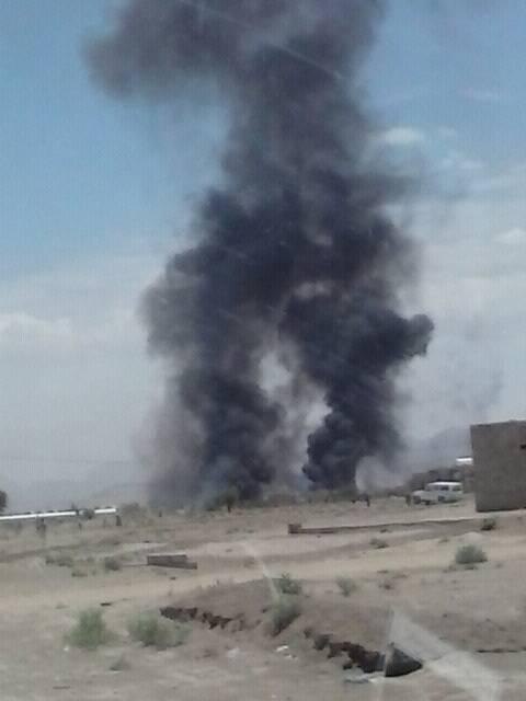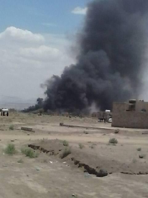 شاهد بالصور أعمدة الدخان تتصاعد من محيط مطار صنعاء الدولي