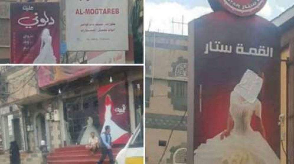 وفي هذا السياق، أكد شهود عيان، أن مسلحين من المراهقين الحوثيين أقدموا على طمس ومحو وجوه صور النساء على اللوحات الإعلانية الخاصة بمحلات تصفيف الشعر وفساتين الأعراس في شارع كلية الشرطة وسط العاصمة صنعاء .