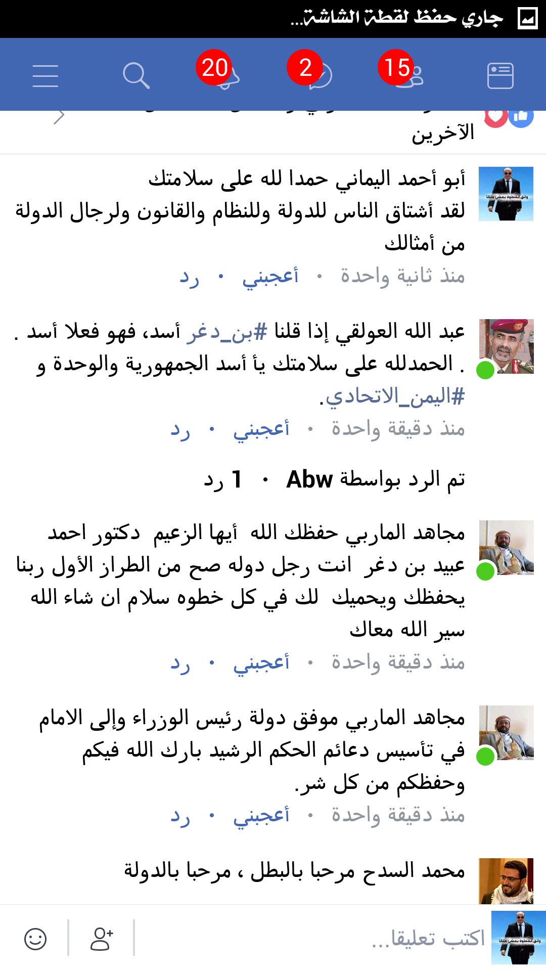 وأردفت حمزة " الله يحفظك يا دكتور، وينصرك ويعينك، يا قادر كريم ..كم أنت تستحق كل الأحترام لمجازفتك وإصرارك على أستكمال عملك ..وتنفيذ توجيهات فخامة الرئيس عبدربه منصور هادي ،وأنقاذ عدن وأهلها من كل المتأمرين ..وإعادة مؤسسات الدولة... سينتصر اليمن على جميع المليشيات برجال هادي عاجلاً أو اجلا..