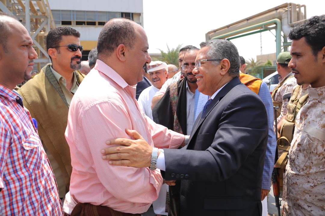 شاهد بالصور لحظة أن فاجئ بن دغر موظفي كهرباء الحسوة في عطلة يوم الجمعة