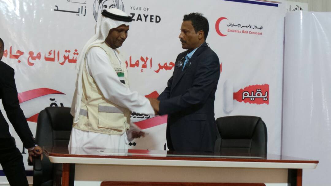 في ختام كلمته عن توقيع إتفاقيات عقب هذا الحفل ،بين فريق الهلال الأحمر الإماراتي بعدن ومحافظات عدن ولحج وأبين وتعز والضالع، في المجالات الإجتماعية والإنسانية. .