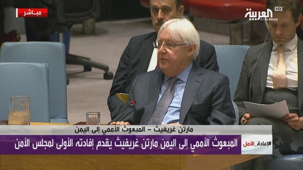 وأضاف غريفيث أثناء تقديمه لإفادته الأولى حول مشاوراته مع الأطراف اليمنية، اليوم،لمجلس الأمن الدولي "إننا سنعمل على التوصل لأتفاق تقبل به كل الأطراف اليمنية، مؤكدا أنه لا حلول غير السياسية في اليمن وأيضا سوريا.