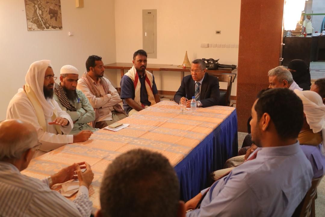 جاء ذلك خلال استقباله في مدينة المكلا بمحافظة حضرموت ،رئيس مؤتمر حضرموت الجامع الشيخ عمرو بن حبريش وعدد من اعضاء المؤتمر.