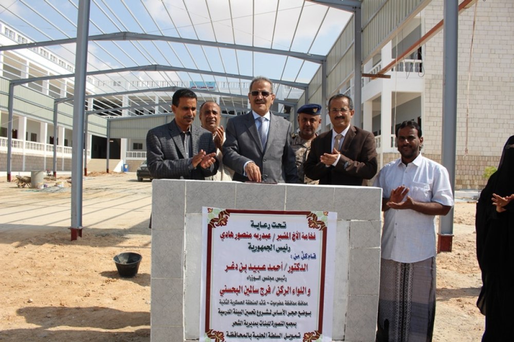 وضع الدكتور عبدالله سالم لملس وزير التربية والتعليم حجر الأساس لمشروع تحسين البيئة المدرسية بمجمع المنصورة التعليمي للبنات بمديرية الشحر بمعية مدير مكتب وزارة التربية والتعليم بمحافظة حضرموت جمال سالم عبدون والمدير العام لمديرية الشحر المهندس امين سعيد بارزيق ومصبح العبد البحسني نائب المدير العام للمديرية ووليد عوض صياد مدير ادارة التربية والتعليم بالمديرية .