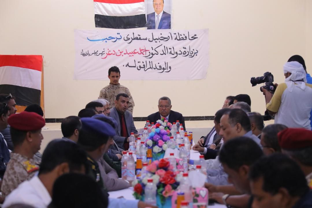 عقد رئيس الوزراء الدكتور أحمد عبيد بن دغر، اليوم، بمحافظة أرخبيل سقطرى اجتماعا موسعا لقيادات السلطة المحلية والمكتب التنفيذي بمحافظة أرخبيل سقطرى.