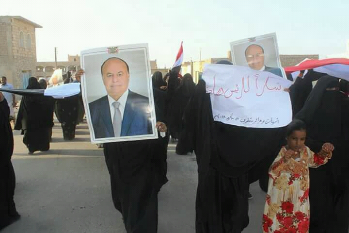 وفي الصور التي رصدها الميناء نيوز - رفعت المتظاهرات صورا للرئيس هادي والعلم الوطني