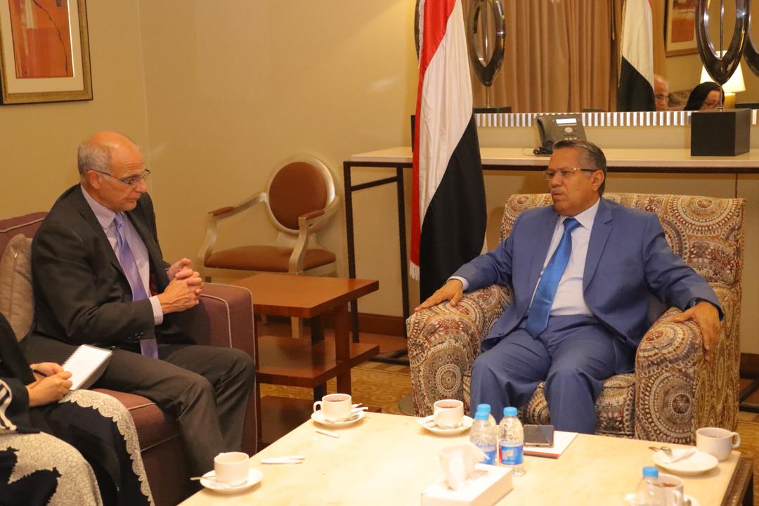 وتطرق اللقاء، الى التحركات النشطة للمبعوث الاممي مارتن غريفيث، واللقاءات التي عقدها مع مختلف الاطراف حيث أوضح بن دغر بهذا الخصوص دعم الحكومة الشرعية الكامل لتحركات المبعوث الاممي، وموقفه الثابت من الالتزام بمرجعيات الحل السياسي.