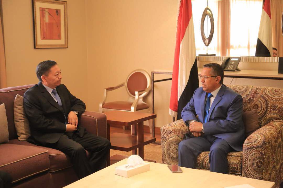 استقبل رئيس الوزراء الدكتور احمد عبيد بن دغر، اليوم، القائم باعمال السفير الصيني لدى بلادنا، جين هوي.