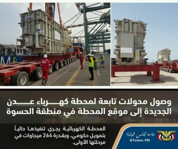 محولات تابعة لمحطة كهرباء عدن الجديدة تصل الى موقع انشائها في منطقة الحسوة...