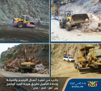 الحكومة تبدأ بترميم واعادة تأهيل طريق «هيجة العبد» ، الشريان الوحيد لمدينة تعز...