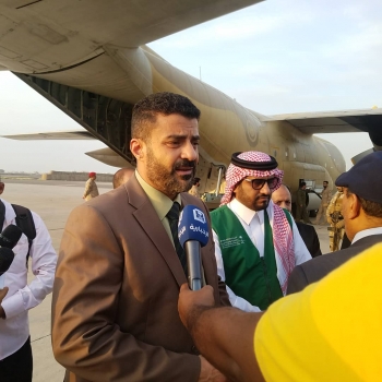 محافظ عدن أحمد سالمين يستقبل أول طائرة سعودية لإغاثة المتضررين من سيول...