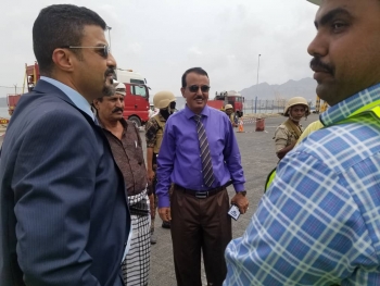 المحافظ سالمين يزور ميناء المنطقة الحرة ويطلع على أعمال التفريغ لتوربينات محطة كهرباء عدن...