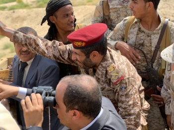 وزير الاعلام يزور الخطوط الأمامية لجبهة حيران بمحافظة...