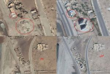 من هنا مرت مسيرة الشيطان..شاهد اولى الصور لاثنين من اكبر المباني نسفهما الحوثيين وسووهما بالارض في المدخل الجنوبي الغربي لمدينة...