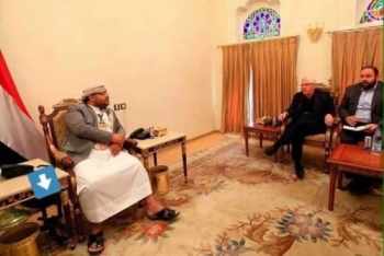 شاهد المفاجأة التي كان يخفيها محمد علي الحوثي تحت الطاولة اثناء لقاءة بالمبعوث الاممي...