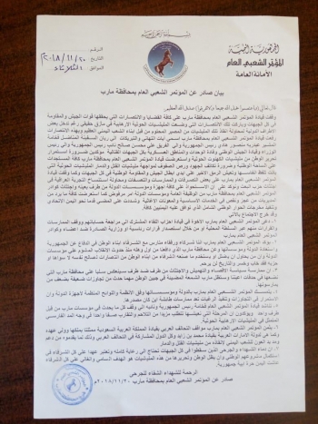 مؤتمر مارب يبارك للقيادة السياسية الانتصارات العسكرية ويؤكد ان الجميع شركاء خلف متراس...