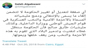 وزير في الحكومة الشرعية يهاجم طارق صالح والانتقالي ونخبة حضرموت وشبوة ويصفهم بالمليشيات ويطالب بدمجهم بالجيش...