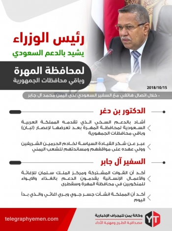 رئيس مجلس الوزراء د.بن دغر يشيد بالدعم السعودي لمحافظة المهرة وباقي محافظات...