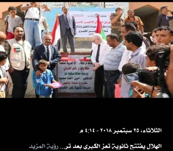 بدء المرحلة الثانية من تأهيل وترميم ثانوية تعز الكبرى بتمويل الهلال الأحمر...