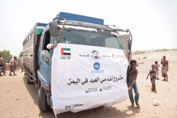 الهلال الأحمر الإماراتي يوزع أضاحي العيد لنازحي الحديدة في مخيمات...