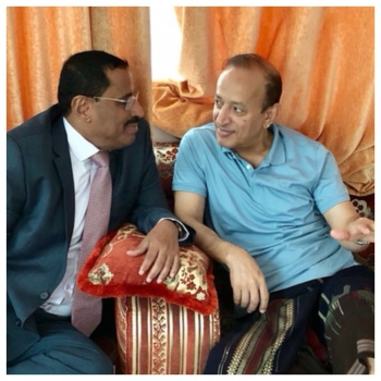 أول صورة واضحة لمحافظ تعز بعد نجاته من محاولة الاغتيال وبجانبه مسئول حكومي...