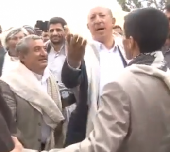 عدسة الكاميرا تصطاد مقطع فيديو للشيخ المؤتمري الأكثر ولاءً لـ”صالح” اثناء لقاءه بـ"قاتل الزعيم" .. شاهد ما الذي فعله...