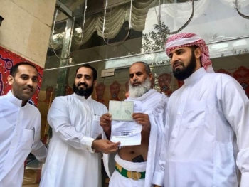 وصول اول معتمر يمني الى مكة ويحضى بإستقبال...