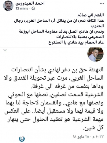 عيدروس الجنوب في اقوى رد على نبيل الصوفي:«عاد الخطام بيد هادي يا...