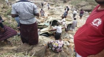 شاهد بالصورة فرق الإنقاذ تعثر على شخصان متوفيان وسيارة جرفتها السيول في...