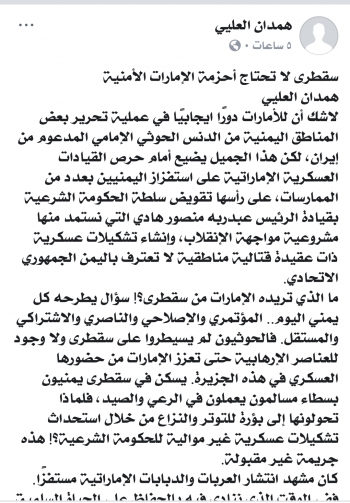 وزيرا في حكومة الشرعية من وسط جزيرة سقطرى : "ستشرق شمس أرض بلقيس من جديد بإذن...