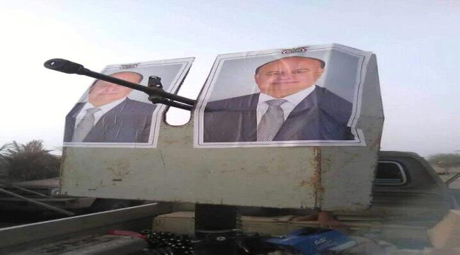وظهر ذلك من خلال رفع قوات العمالقة صور الرئيس عبد ربه منصور هادي على الأطقم العسكرية والمدرعات والآليات بجبهة الساحل الغربي.