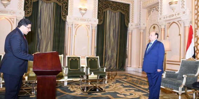 وعقب اداء اليمين الدستورية ،وجه فخامة الرئيس السفير احمد مبارك بما يلزم لتكثيف نشاطه وجهوده المعتادة في هذه المرحلة الصعبة والحرجة التي تمر بها بلادنا وتتحقق فيها انتصارات ميدانية متوالية في مختلف الجبهات والتي تتطلب معها الفعل الدبلوماسي النشط والمواكبة مع المجتمع الدولي لبلورة واقع اليمن وقضاياه وتحدياته ومخاضاته التي عاشها اليمنيون طوال السنوات الماضية جراء انقلاب المليشيا الحوثية الايرانية على مخرجات الحوار الوطني والتوافق الوطني خدمة لأجندة واهداف ايران التوسعية في المنطقة..مؤكداً انتصار الارادة اليمنية المدعومة دولياً ومسنودة ميدانياً بدعم الاشقاء في دول التحالف العربي بقيادة المملكة العربية السعودية.