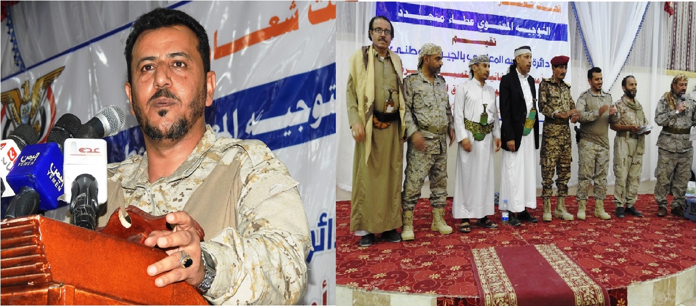 بدوره قال العقيد دكتور/ فيصل مختار رئيس شعبة التوجيه المعنوي في المنطقة العسكرية السابعة, إن مهمة الجيش الوطني هي تحرير اليمن واستعادة الدولة من أيدي المليشيا الانقلابية الخارجة عن إجماع الشعب اليمني وقيمه الاجتماعية والإنسانية.