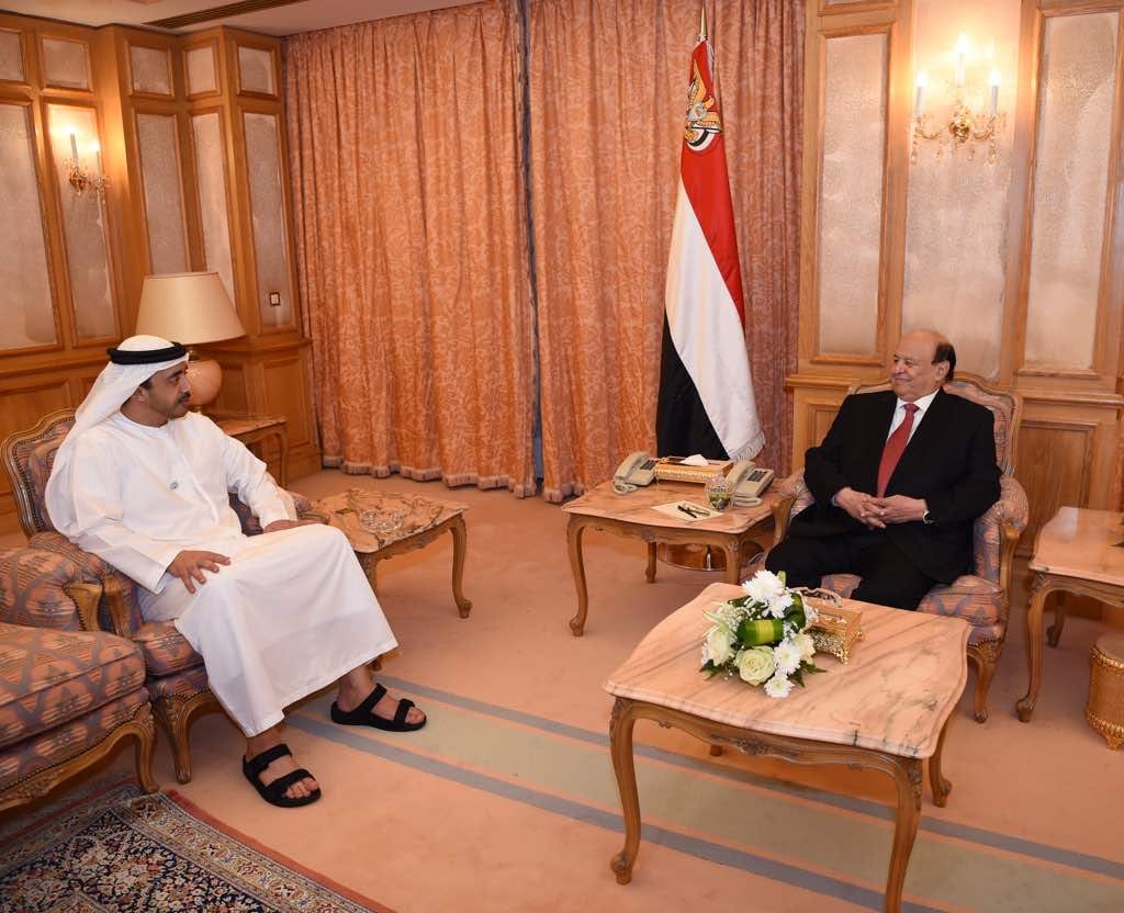 وفي سياق متصل استقبل فخامة الرئيس عبدربه منصور هادي رئيس الجمهورية مساء امس الاثنين بمقر إقامته بمكة المكرمة أخيه وزير الخارجية والتعاون الدولي بدولة الإمارات العربية المتحدة سمو الشيخ عبدالله بن زايد ال نهيان.