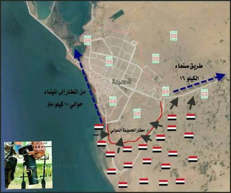 تشن مقاتلات التحالف العربي في هذه الأثناء قصفا عنيفا على مواقع مليشيات الحوثي في مطار الحديدة.