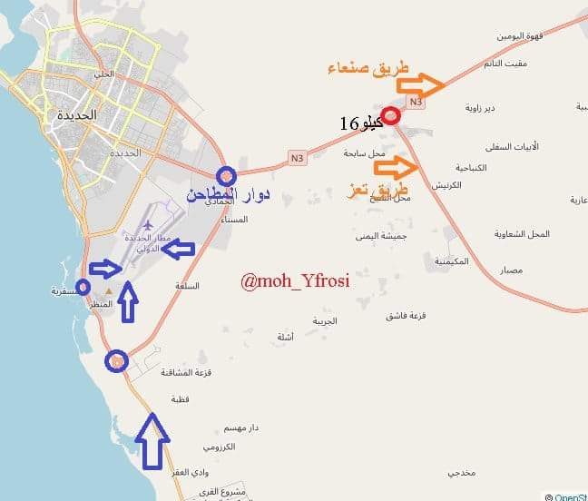 مصدر عسكري يكشف للميناء نيوز حقيقة فيديو البخيتي من داخل مطار الحديدة وآخر التطورات العسكرية والنقطة التي وصلت اليها القوات المشتركة «خريطة توضيحية»