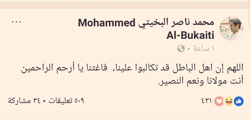 البخيتي قال في منشورات رصدها (عدن الغد): اللهم إن اهل الباطل قد تكالبوا علينا، فاغثنا يا أرحم الراحمين أنت مولانا ونعم النصير.