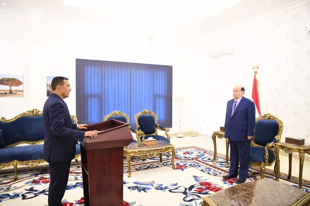 أدى اليمين الدستورية امام فخامة الرئيس عبدربه منصور هادي رئيس الجمهورية،اليوم،كلاً من رمزي احمد سعيد محروس بمناسبة تعيينه محافظاً لمحافظة ارخبيل سقطرى و ناصر الخضر السوادي بمناسبة تعيينه محافظاً لمحافظة البيضاء .