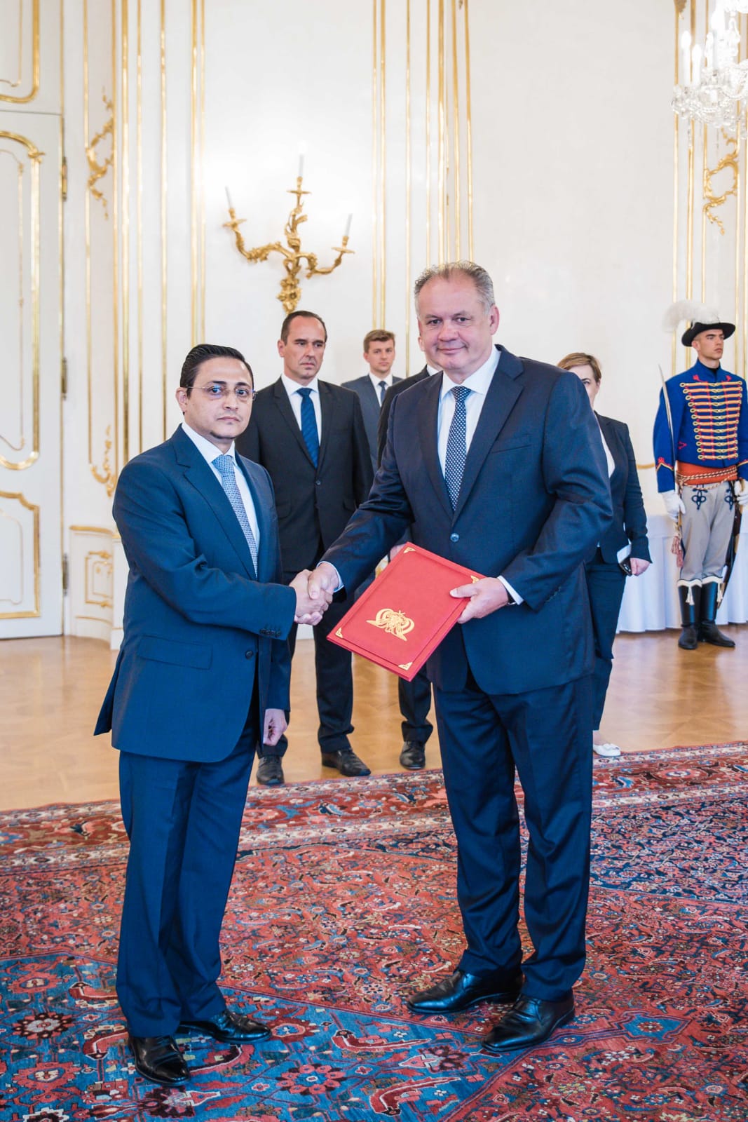 تسلم الرئيس السلوفاكي اندريه كيسكا أوراق اعتماد هيثم شجاع الدين سفيرا لليمن فوق العادة ومفوضاً غير مقيم لدى سلوفاكيا.