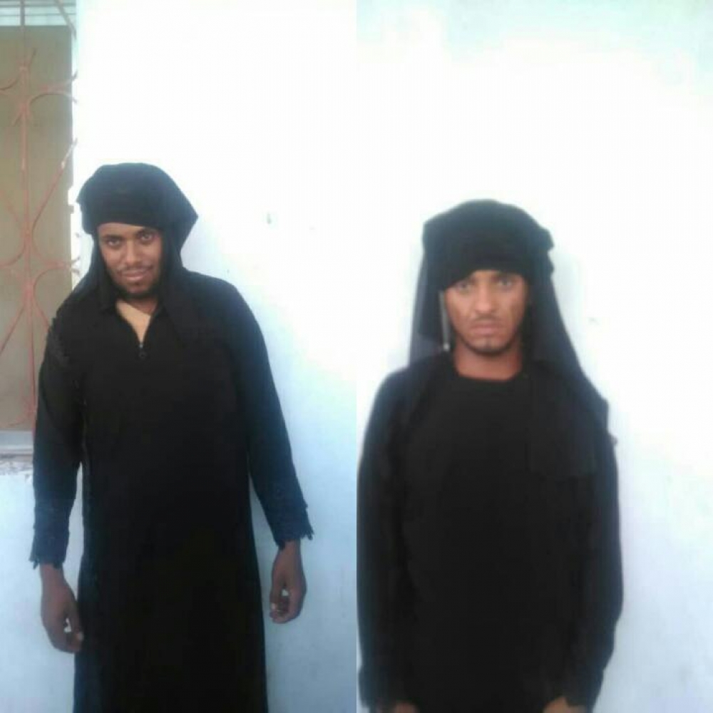 شاهد صورة رجال بملابس نسائية وهم في قبضة أمن محافظة لحج