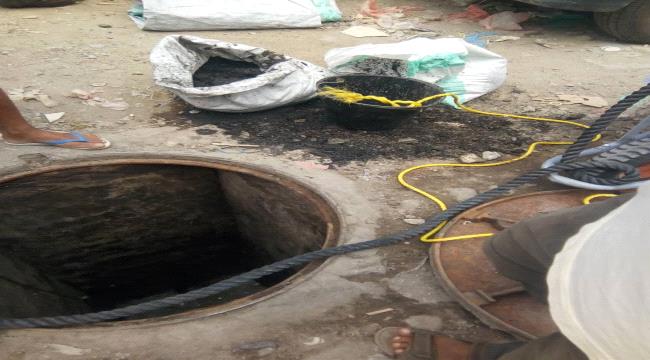 دشنت السلطة المحلي لمديرية التواهي العاصمة عدن، حملة تنظيف شاملة لشبكة مياه الصرف الصحي في المديرية .