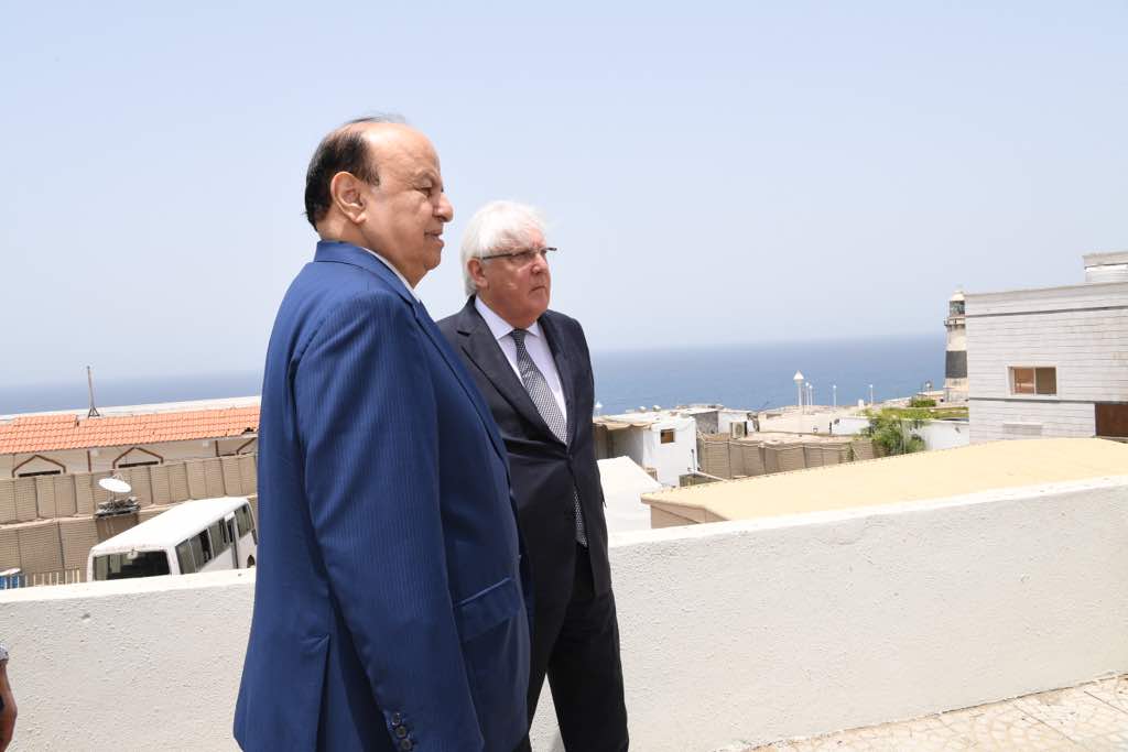 التقى فخامة الاخ الرئيس عبدربه منصور هادي رئيس الجمهورية اليمنية ظهر اليوم الاربعاء ?? يونيو ????، في العاصمة المؤقتة عدن، في اطار المساعي الحثيثة و الجهود المشتركة بين الحكومة اليمنية والامم المتحدة ممثلة بالمبعوث الخاص للسيد الامين العام الى اليمن مارتن غريفث. ولاهمية اللقاء ومادارت فيه من مناقشات صرح وزير الخارجية خالد حسين اليماني عقب اللقاء بالتالي: