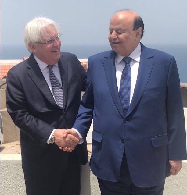 شاهد بالصور: الرئيس هادي ممسكا بيد غريفث في باحة المعاشيق