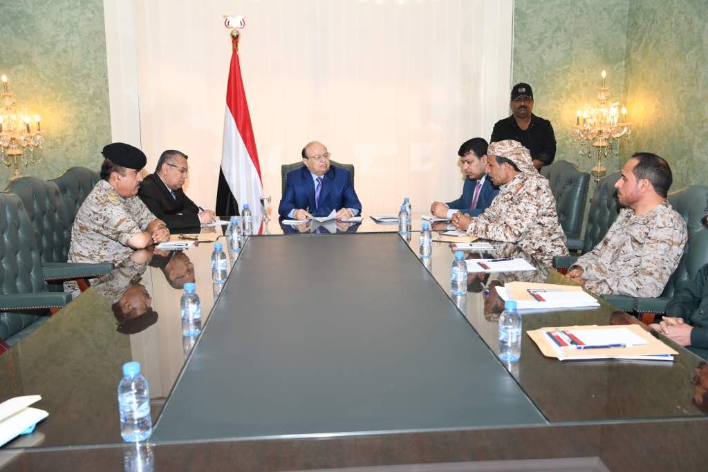وقال فخامة الرئيس" هناك ادوار كبيرة تعلق عليكم باعتباركم من القيادات العسكرية والامنية التي لها إسهامات ميدانية في مواجهة المليشيا لتوحيد الجهود والصفوف".