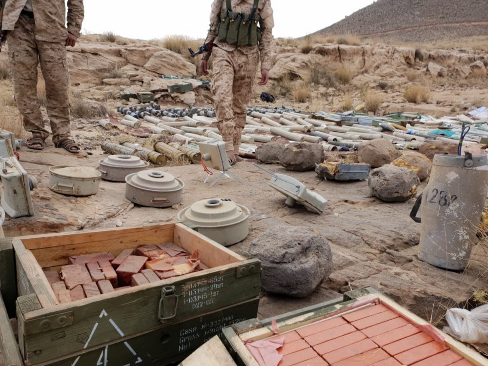 وكشف القباطي عن عثورهم على صندوقين يحتويان كمية كبيرة من مادة "T.N.T" الخاصة بصنع المتفجرات، كانت تستخدمها الميليشيات الحوثية في صناعة المتفجرات، إلى جانب استعادة الجيش اليمني لكميات من الأسلحة كانت بحوزة الميليشيات، أبرزها "40 صفيحة ذخيرة 12.7 روسي، و37 قذيفة آر بي جي، و120 قذيفة هاون عيار 81-82، وقذائف بي عشرة، و24 لغما، وأنواع أخرى من الألغام مموهة وفردية، وصفائح ذخائر متنوعة مع كمية من القنابل".
