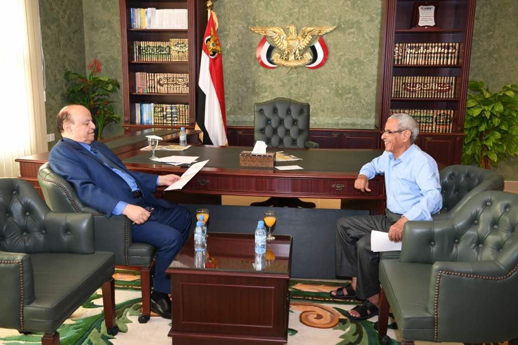 رئيس الجمهورية يلتقي المناضل السبتمبري اللواء احمد قرحش بالعاصمة المؤقتة عدن