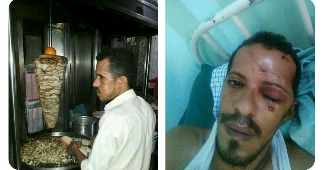 شاهد صورة عامل البوفية الذي اعتدى عليه انفصاليون بـ عدن وكيف تشوه وجهه من الضرب المبرح بتهمة أنه شمالي